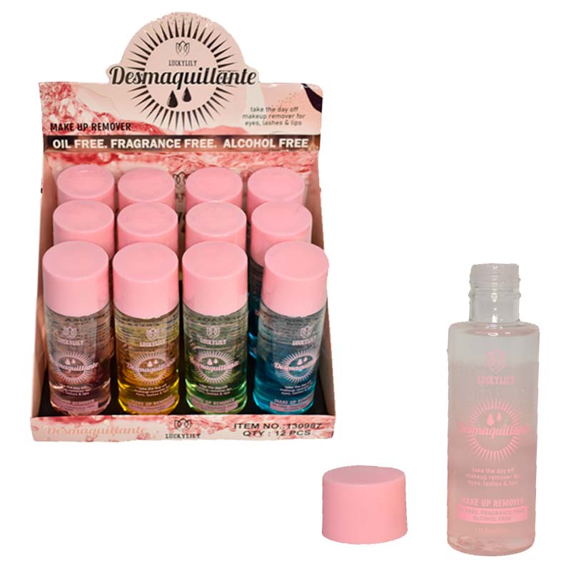Desmaquillante líquido en diferentes presentaciones. Lucky Lily es una nueva marca que viene a innovar el mundo del skin care, este desmaquillante es un producto que limpia profundamente las impurezas del rostro, remueve la suciedad en los poros y reduce los puntos negros.
