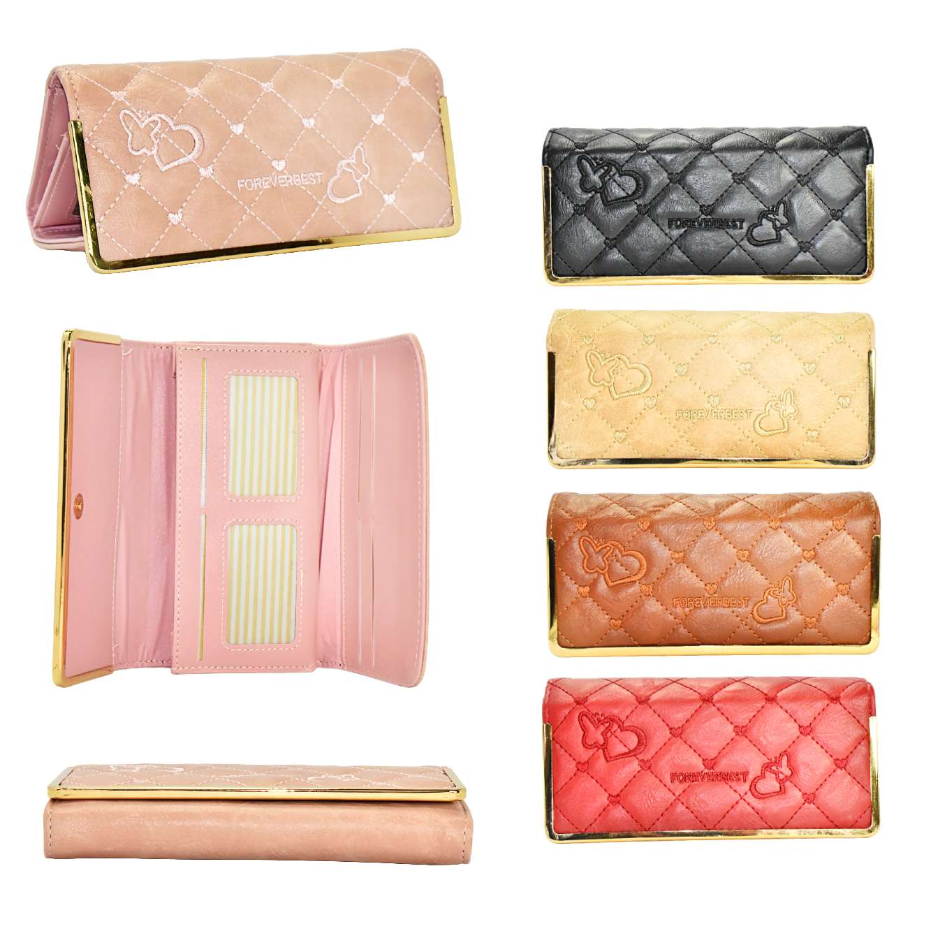 Billetera moderna para mujer de la marca Forever Best está hecha de cuerina sintética encerado con broches y cremalleras de metal, es un producto ideal para llevar a cualquier lugar, su material y colores son muy fáciles de combinar. Posee 3 compartimentos para tarjetas, 1 compartimento para billetes y 1 compartimento para monedas.