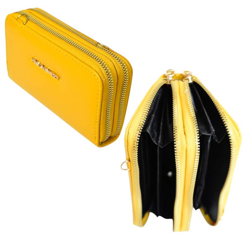 Billetera moderna para mujer de la marca Pink in Sweet está hecha de cuerina sintética encerado con broches y cremalleras de metal, es un producto ideal para llevar a cualquier lugar, sus materiales son muy resistentes y fáciles de combinar. En su interior cuenta con varias aberturas para que puedas guardar tus objetos más preciados. Esta billetera la puedes usar como tipo cartera, ya que cuenta con una cadena de acero inoxidable que sirve para que utilices tu cartera como un bolso normal.