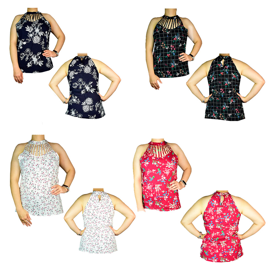 Blusa sin mangas con diseño de flores es ideal para eventos formales y casuales, su material resistente, liviano y fresco los vuelven perfectos para lucir un outfit sofisticado y casual. Este producto en específico cuenta con una parte abierta en paletones enfrente y una pequeña abertura por detrás.