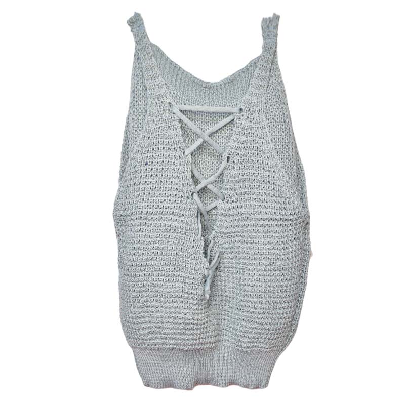 - Material fresco y liviano sin mangas con abertura entrelazada por detrás