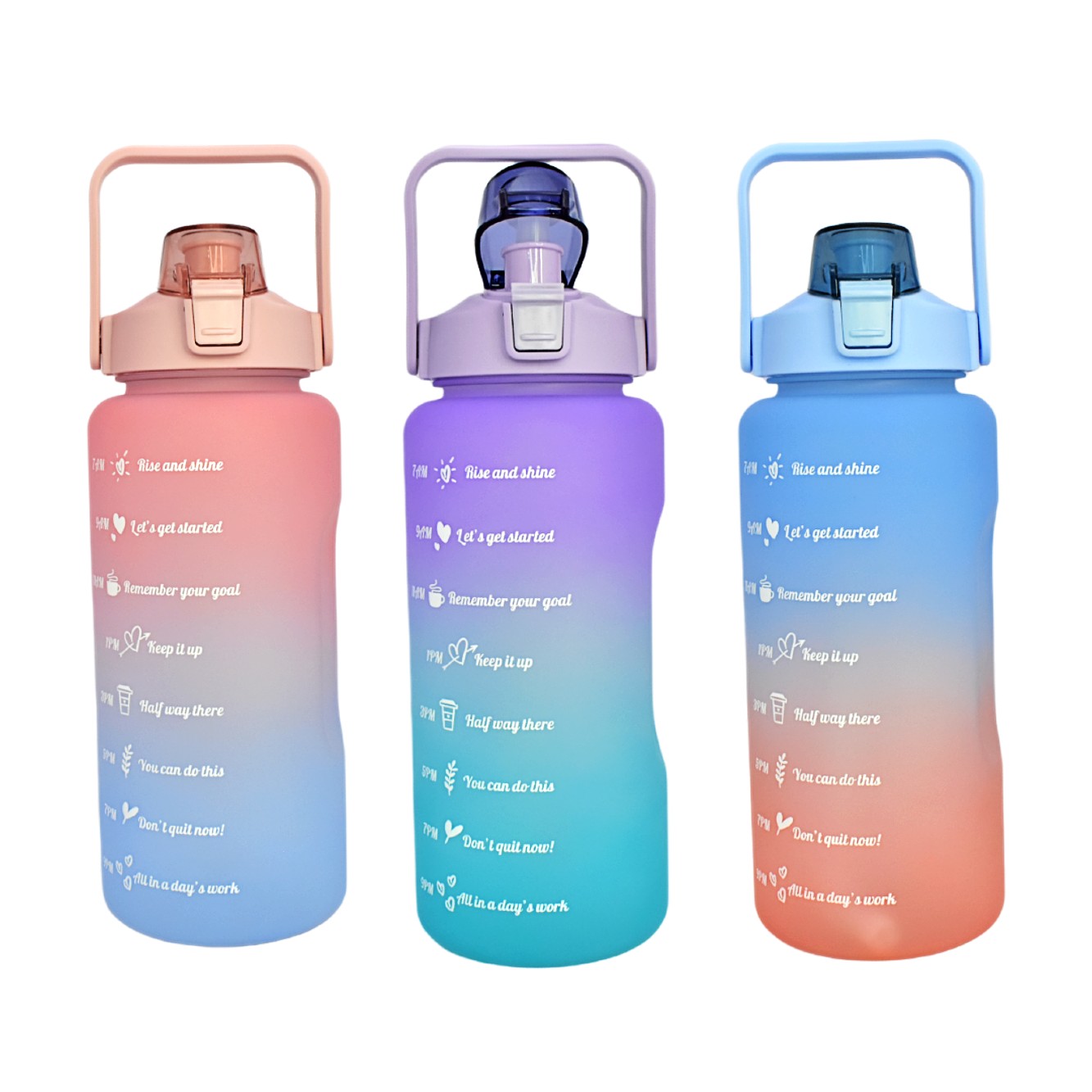 Botella de agua deportiva motivacional de colores difuminados 2 litros