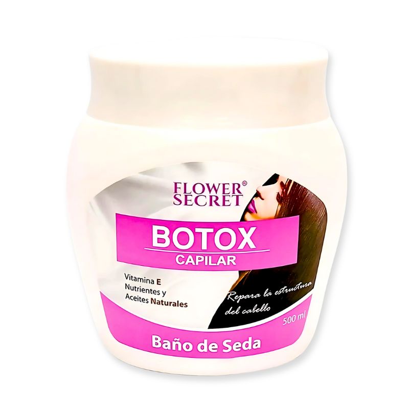 - Uso: después del lavado de shampoo, quitar el exceso de agua, aplicar una cantidad suficiente de Botox Flower Secret y masajear dejando el producto actuar por 15 minutos. Para finalizar retirar el producto con abundante agua tibia.