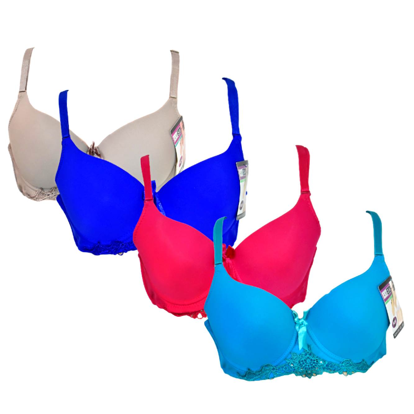 - Distribuido en colores surtidos (Turquesa, rojo, azul pavo, negro, rosado y gris) y tallas surtidas (40-90, 42-95, 36-80, 38-85)