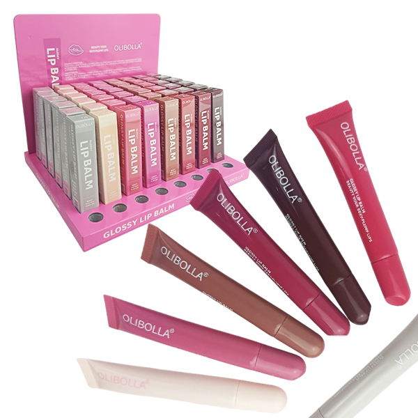 Brillo con gliter que resalta los labios.