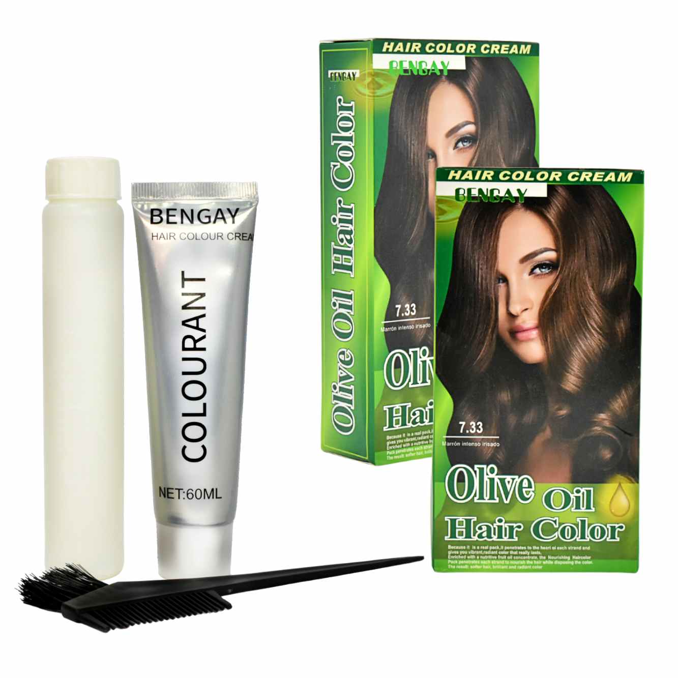 Coloración en crema con aceite de oliva para el cabello 7.33 marron intenso irisado