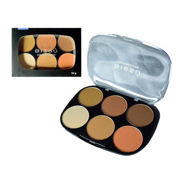 Contorno de la marca Bissu contiene una paleta de 6 colores bronceado a oscuro ideales para pieles morenas y morenas oscuras, es un contorno que domina la técnica de perfilar tu rostro mediante la aplicación de tonos claros y oscuros. Aplica tonos oscuros para definir y dar profundidad, aplica tonos claros para resaltar y dar luz.