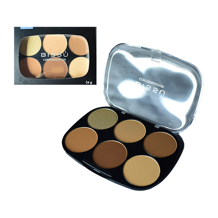 Contorno de la marca Bissu contiene una paleta de 6 colores medios a bronceado ideales para pieles morenas claras y morenas, es un contorno que domina la técnica de perfilar tu rostro mediante la aplicación de tonos claros y oscuros. Aplica tonos oscuros para definir y dar profundidad, aplica tonos claros para resaltar y dar luz.