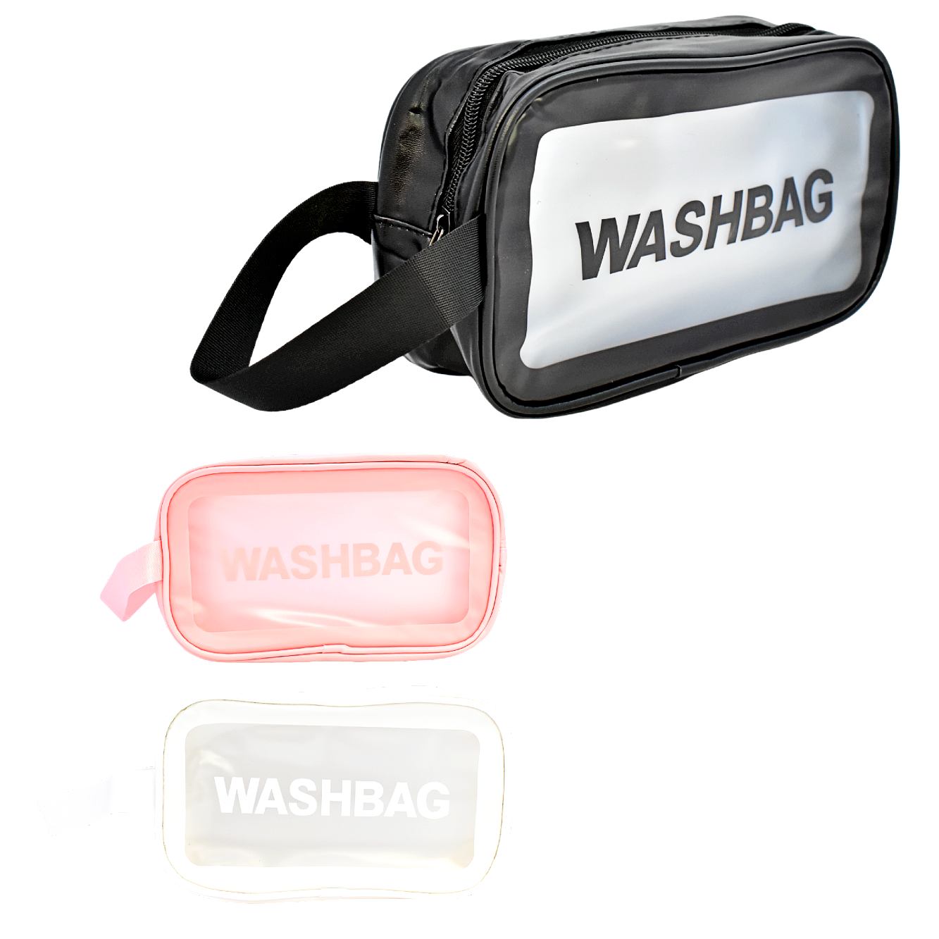 - Presentación moderna con letras WASH BAG.