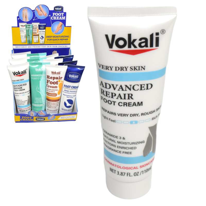 Crema para pies vokali piel aspera presentación blanca franja celeste