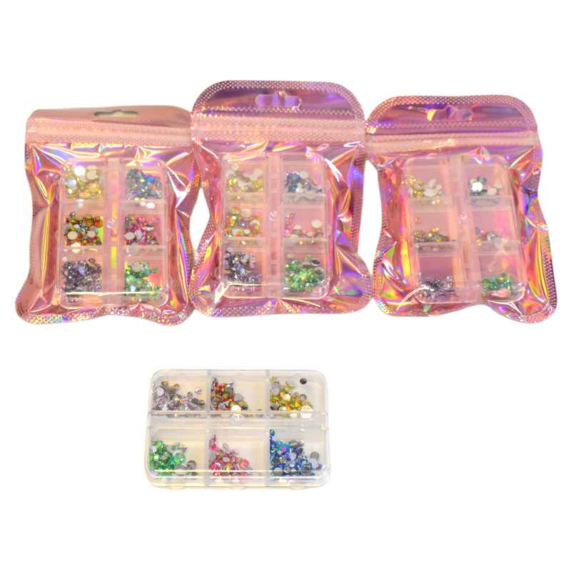 Kit de decoradores para uñas contiene variedad de figuras y piedras con diseño de diamantes redondos, su presentación con empaque rosado brillante los vuelven ideales para transporte en viajes o negocios. Crea una apariencia mas atrevida y moderna en tus aplicaciones de manicura y pedicura.
