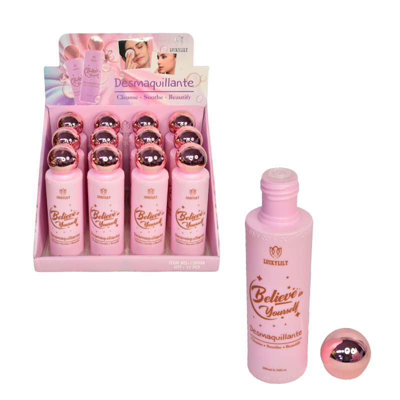 Desmaquillante líquido en presentación moderna. Lucky Lily es una nueva marca que viene a innovar el mundo del skin care, este desmaquillante es un producto que limpia profundamente las impurezas del rostro, remueve la suciedad en los poros y reduce los puntos negros.