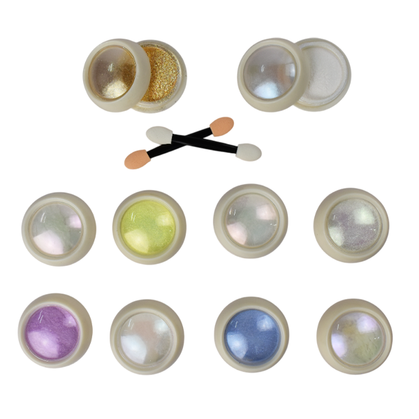 Duo polvo efecto espejo y papel oro para uñas recipiente blanco redondo