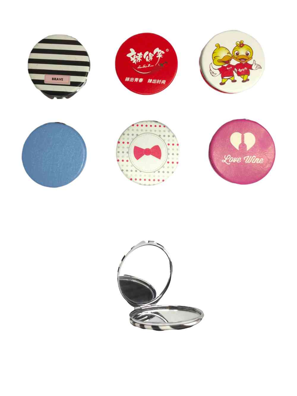 Increíble espejo compacto que impresionará a cualquiera. Es un espejo que al momento de abrir, te darás cuenta que tiene doble espejo. Fabricado con aleación de metales de alta calidad y forrado de cuerina para una mejor resistencia. Es apto para cualquier tipo de viaje, ya que su diseño compacto lo hace fácil de transportar