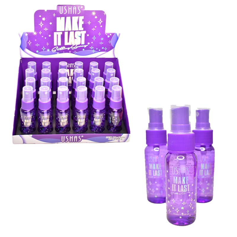 Fijador de maquillaje en spray presentación morado con estrellas 30ml