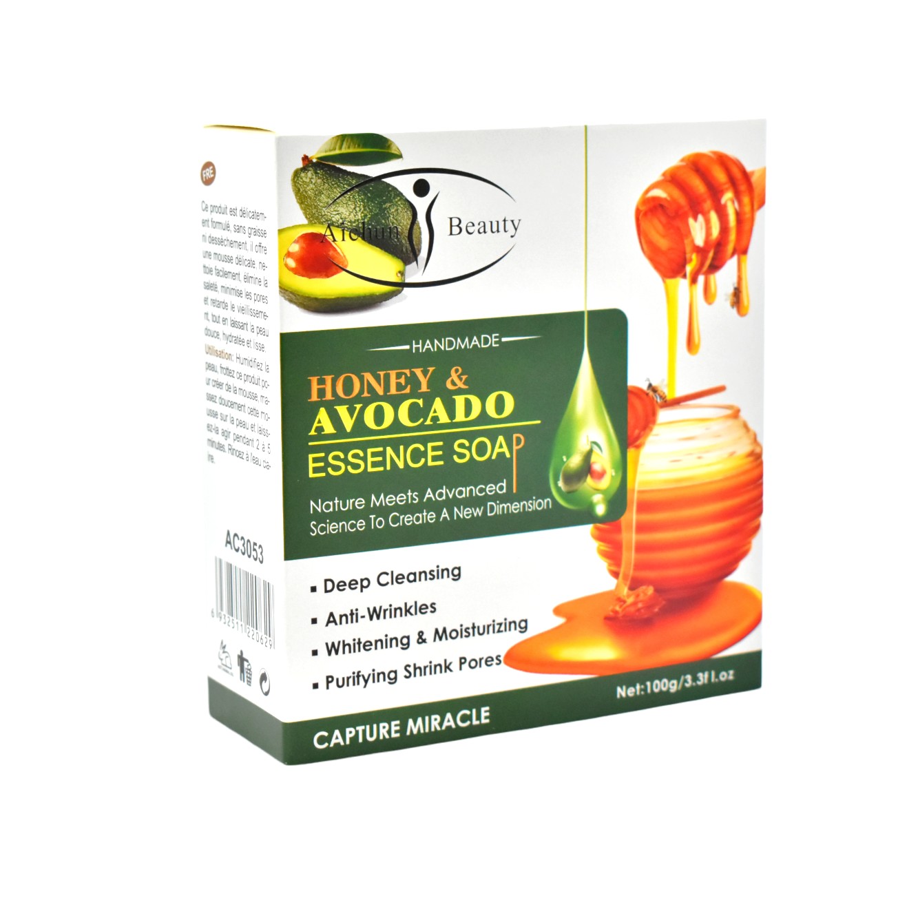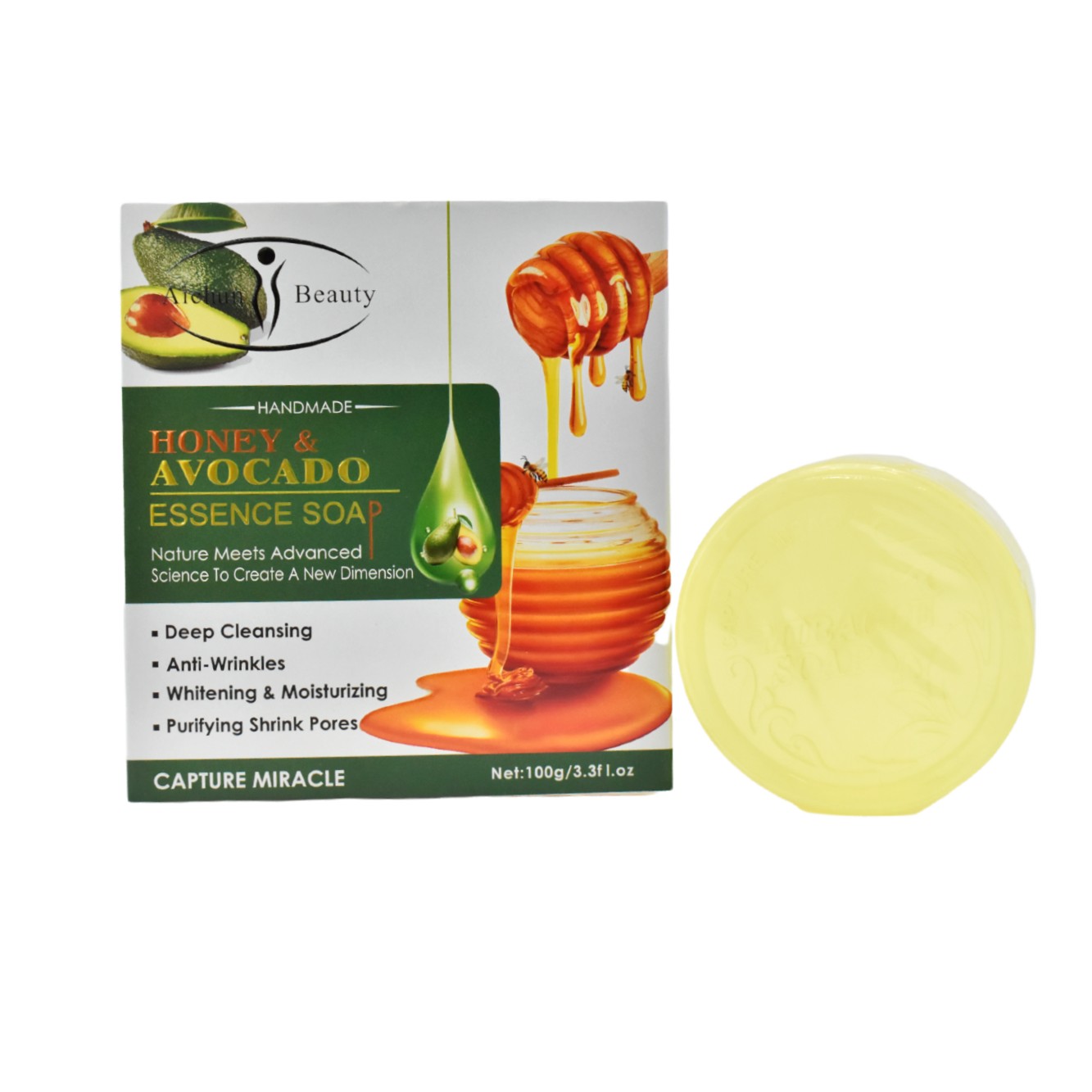 Jabón en barra circular con extracto de miel y aguacate Aichun Beauty