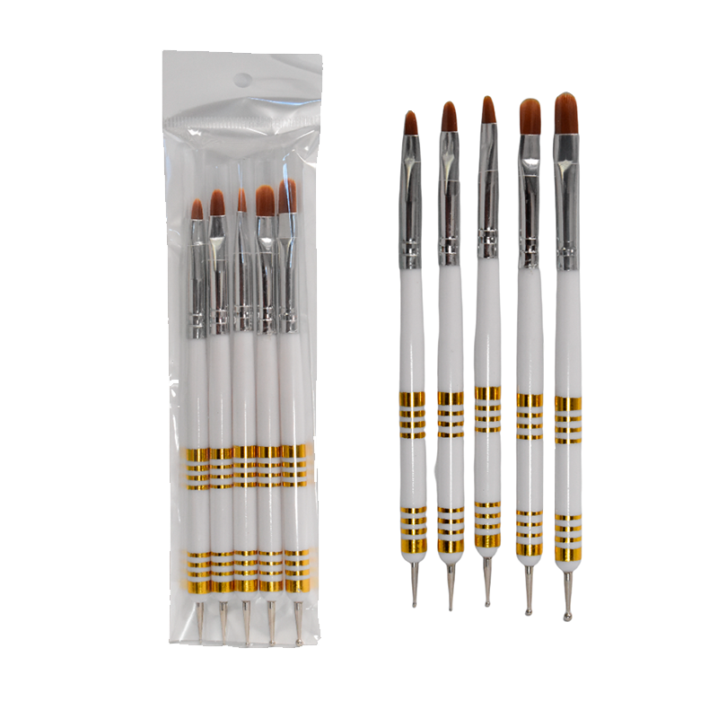 Kit de 5 pinceles y aplicadores dobles para uñas color blanco y dorado