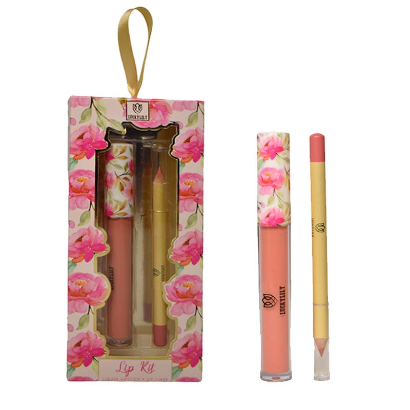 Kit de labial líquido y delineador labial en lápiz Lucky Lily diseño flores