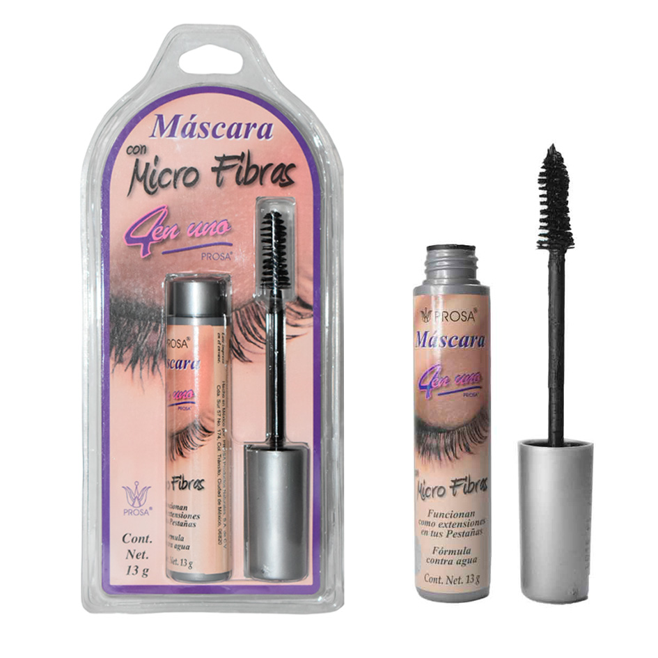 Máscara color negro Micro Fibras 4 en 1 Prosa presentación blíster tapa gris