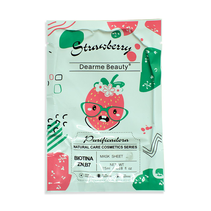 Mascarilla en sobre de la marca Dearme Beauty en su presentación de fresa es un producto ideal para hidratar, suavizar y eliminar las impurezas de la piel. Su composición la vuelve purificadora y refrescante por un tiempo prolongado.