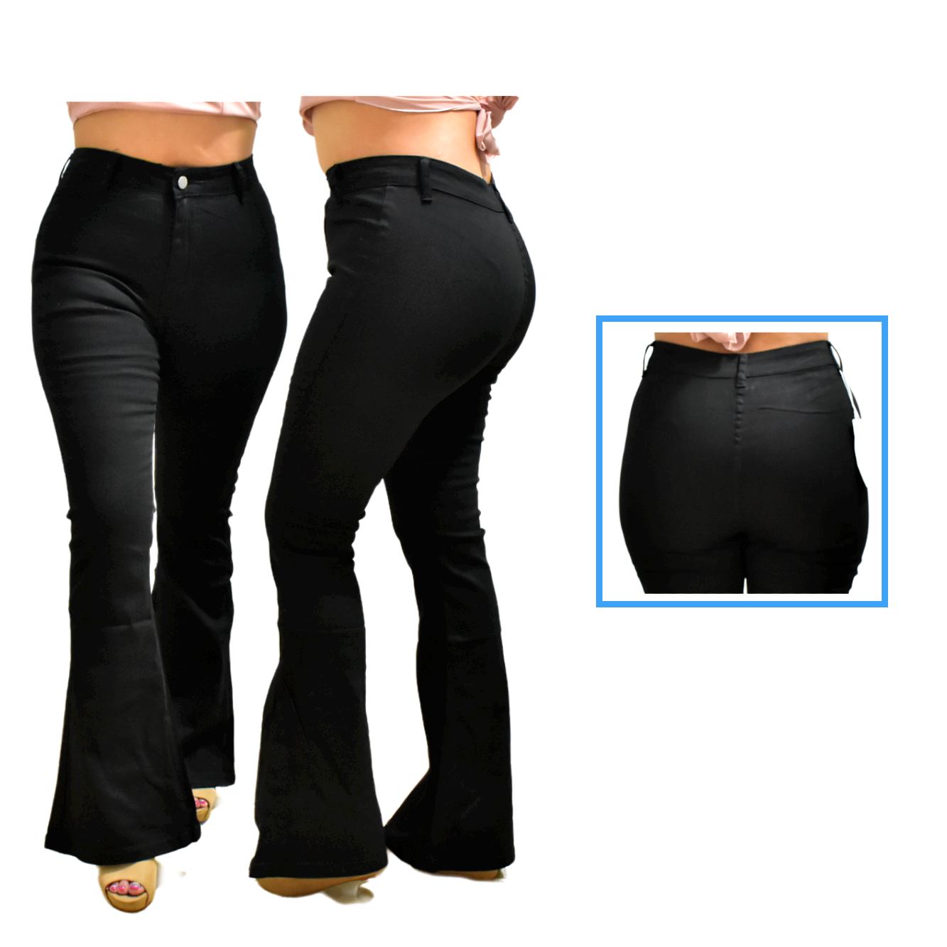 Pantalón acampanado negro vaquero Split doble boton Denim