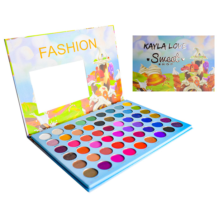 Sombras Kayla Love en su presentación Sweet Shop contienen 54 tonalidades con excelente pigmentación, son ideales para crear maquillajes naturales y sofisticados. Su variedad de colores matte y glitter las vuelven la favorita de todas.