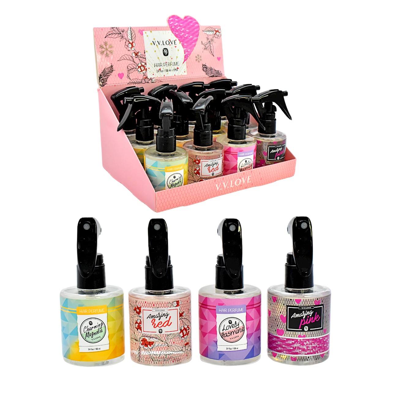 Splash para cabello V.V Love de 100ml caja rosada