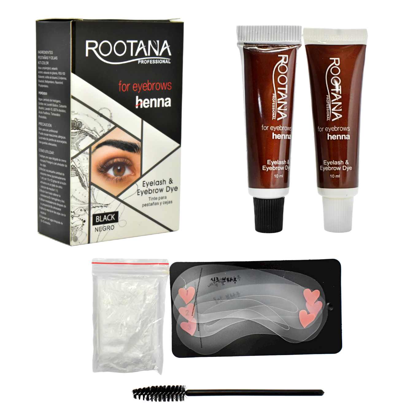 - Incluye plantillas, dos cremas para realizar tu tinte y una pequeña brocha para peinar cejas.