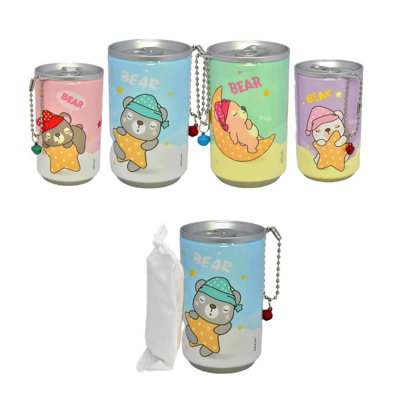 Toallita desmaquillante presentación en lata con osos descansando sobre estrellas