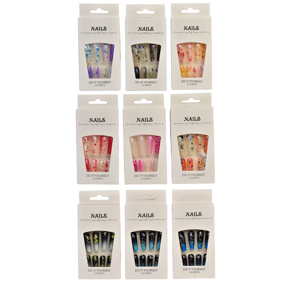 Uñas artificiales de la colección de uñas escamas brillantes Nail Art Huasisi, contiene 10 unidades por caja. Podrás crear tus mejores diseños ajustando y colocando cuidadosamente este set de uñas. Crea una apariencia moderna y sofisticada con la variedad de diseños. El término “press on” hace referencia, precisamente, a la clave de su colocación, que consiste en una ligera presión sea cual sea el material de adhesión, sin que se genere aire entre la uña postiza y la uña natural para lograr una mejor adherencia.